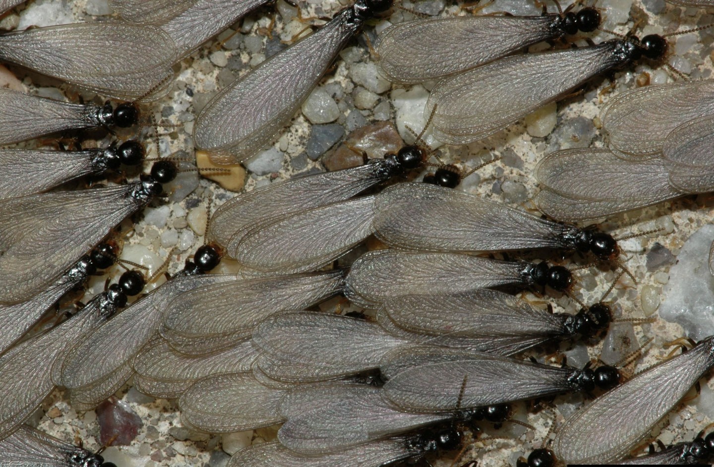 Winged reproductives are dark brown to brownish black and have two pairs of equal size wings. After a flight, the winged males and females return to the ground and shed their wings. The royal couple digs a chamber in the soil near wood, enters the chamber and seals the opening. After mating, the queen starts laying eggs. The queen may live up to 25 years and lay more than 60,000 eggs a day. The eggs are yellowish white and hatch after an incubation of 50 to 60 days.